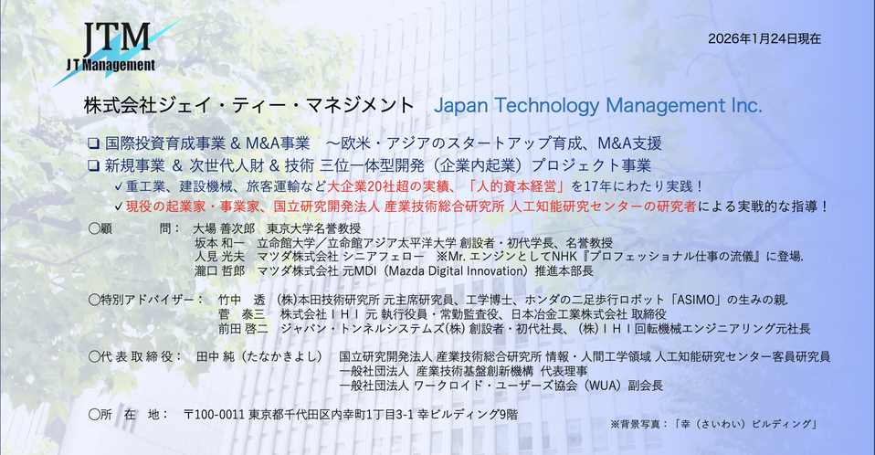元主席研究員で工学博士、ホンダの二足歩行ロボット「ASIMO」の生みの親として知られる竹中 透(たけなかとおる)が、わが株式会社ジェイ・ティー・マネジメントの特別アドバイザーに就任しました。